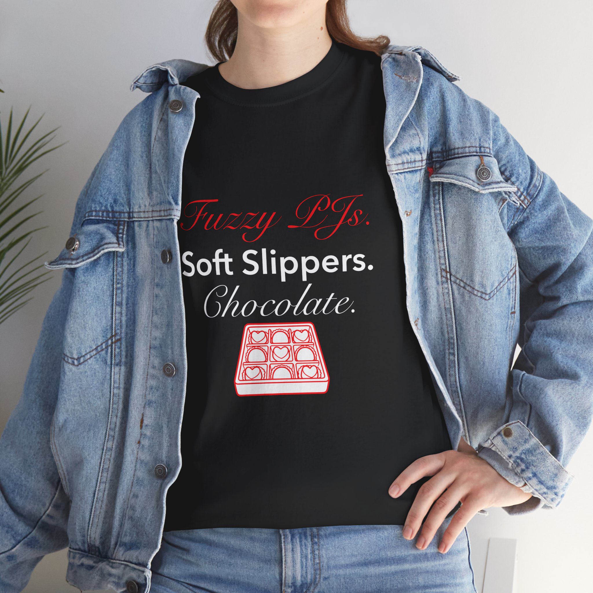 “Fuzzy PJs, Soft Slippers, Chocolate” T-Shirt