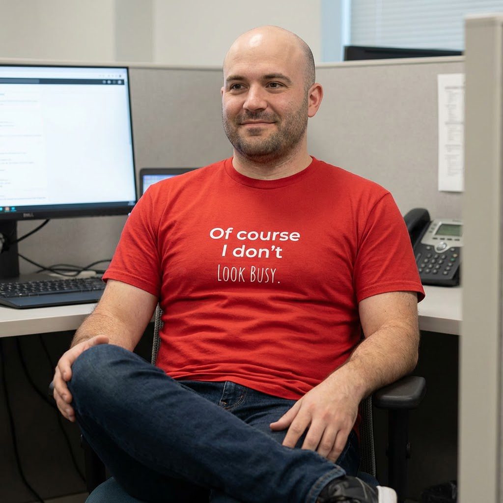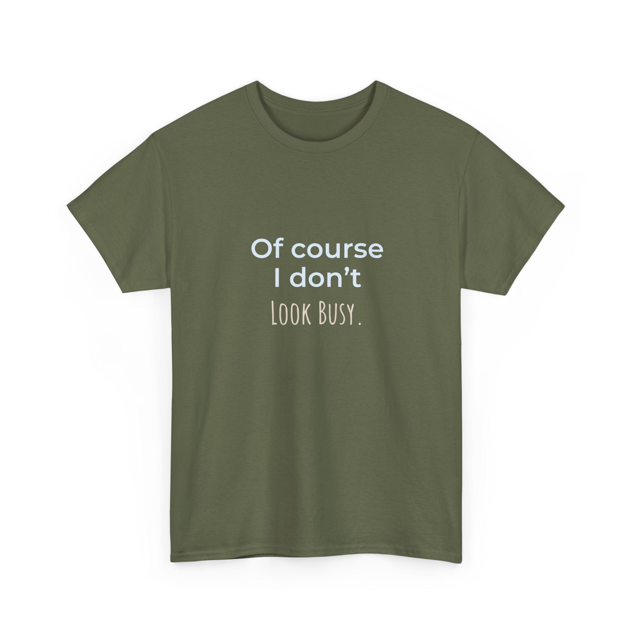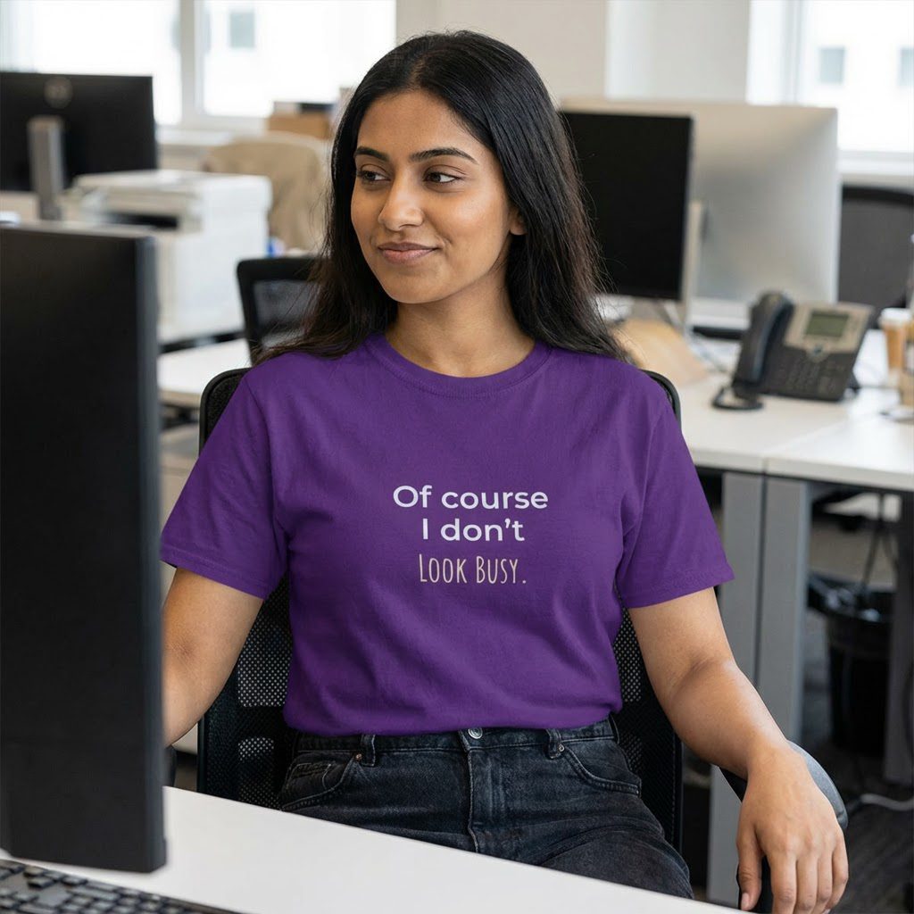 A soft, casual tee that speaks with a wink. This shirt carries a dry, sarcastic line, “Of Course I Don’t Look Busy,” that lands in conversations and on coffee runs. It feels lived-in without being worn-out: steady-weight cotton, a classic crew neck, and a relaxed fit that drapes easily over shoulders. Wear it for slow mornings, hectic open-office days, or when you want to deflect small talk with a smirk.