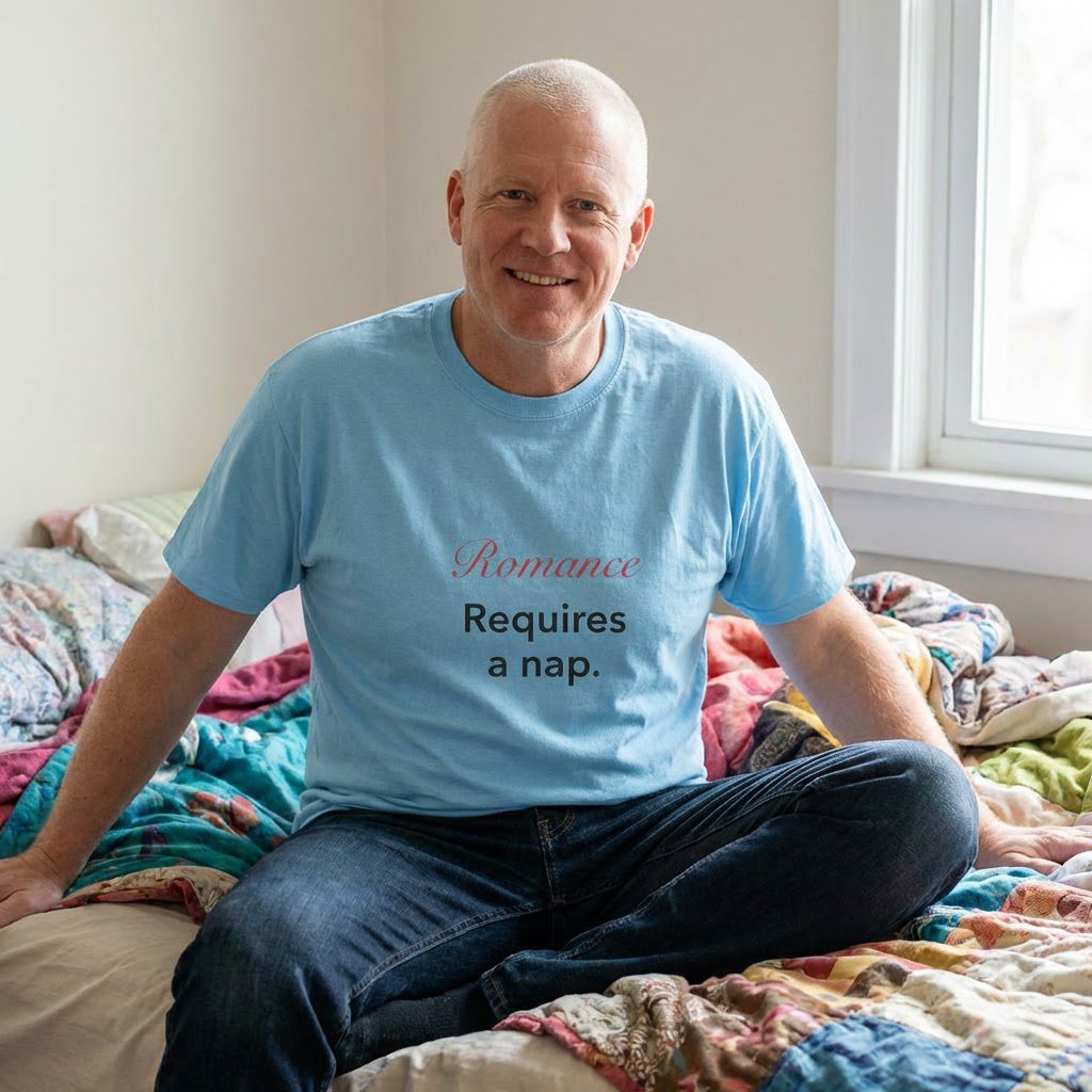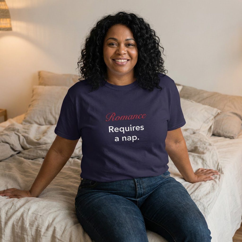 This tee reads like a wink and a yawn at once; a lighthearted relationship shirt for the person who loves romance but also values comfort and downtime. Soft, breathable cotton drapes casually while the playful “romance requires a nap” vibe shows up in coffee runs, lazy afternoons, or cozy movie nights. It pairs with worn jeans or leggings and becomes the shirt you reach for when you want to be warm, funny, and a little real. Wear it to low-key date nights, coffee shop meetups, or quiet evenings in. The message lands with gentle humor rather than grand declarations, making it feel personal and instantly relatable.