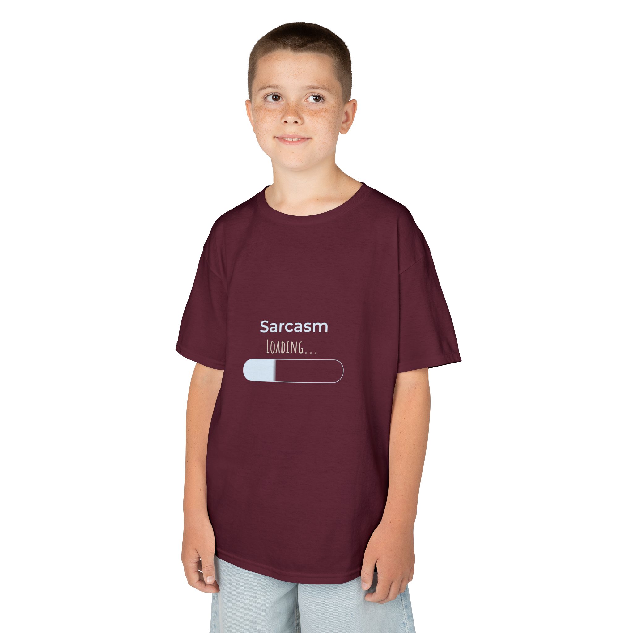 This “Sarcasm Loading” youth tee warns everyone what they’re in for. A simple loading bar lets everyone know a tween is in the room. A playful kids’ tee made from soft, midweight cotton and a classic crew neckline lets little ones run, climb, and roll while the subtle front graphic, a minimal “Sarcasm loading” progress bar, adds a wink of humor to everyday play.