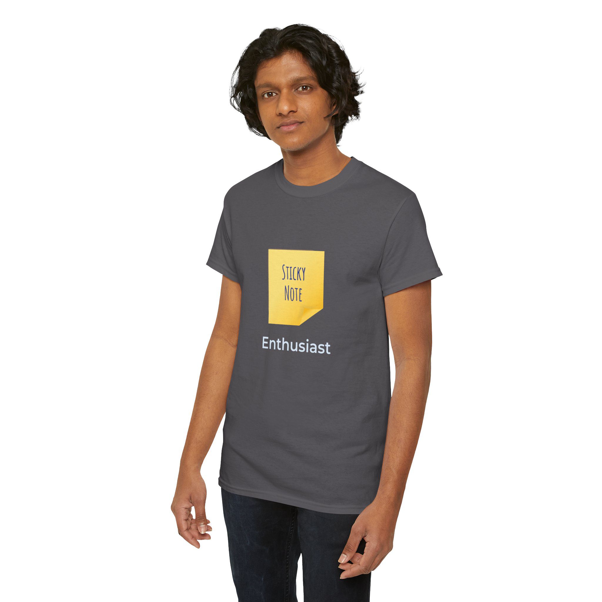 A soft, classic crew tee that wears like a favorite note left on your desk. The front features a simple yellow sticky-note graphic and the words, “Sticky Note Enthusiast,” a small, playful declaration that fits into everyday routines.