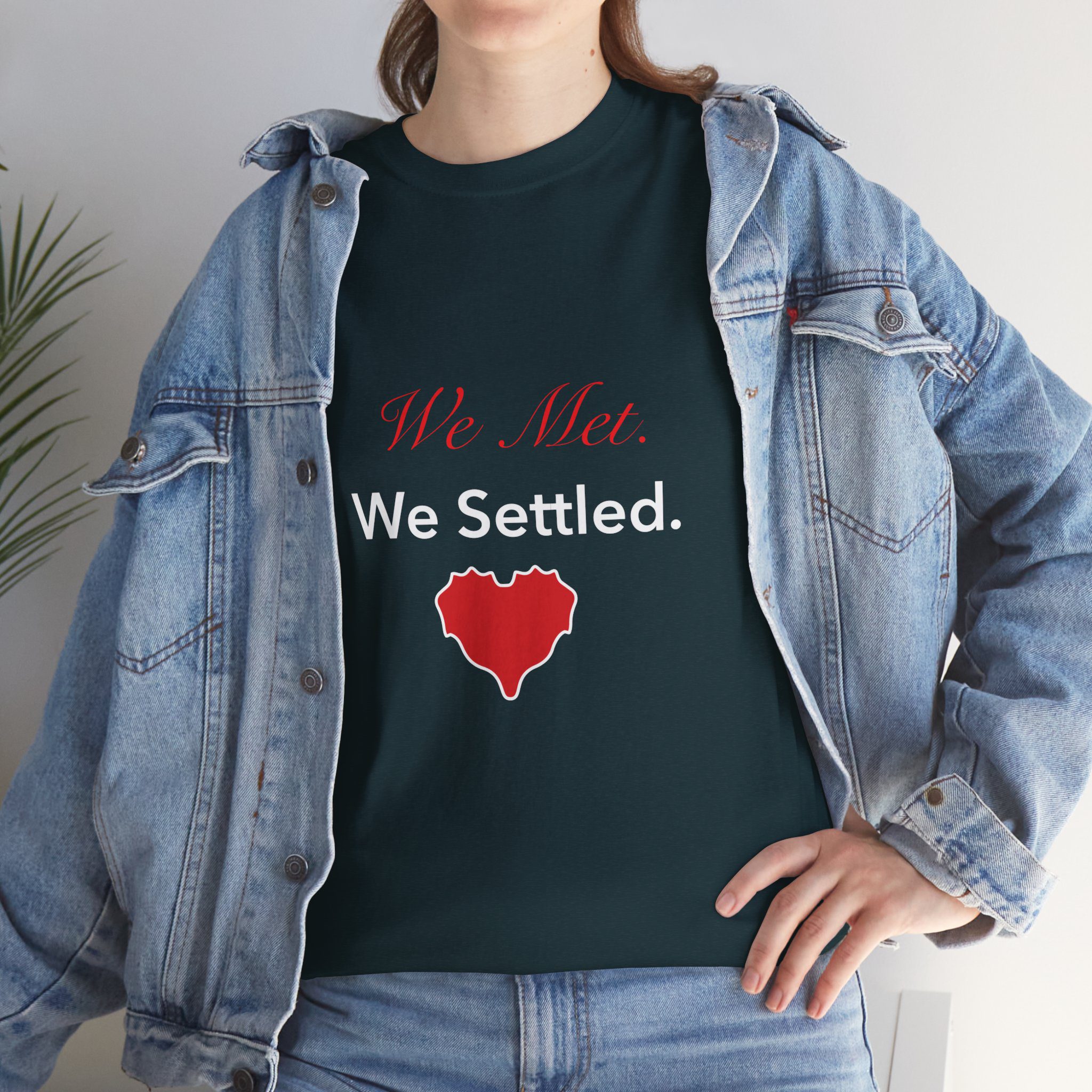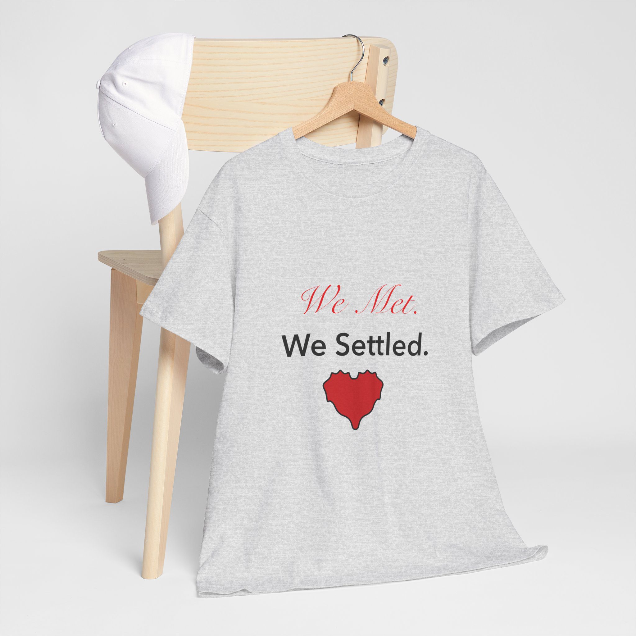 “We Met. We Settled.” Funny Relationship T-Shirt